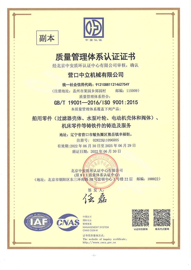 營(yíng)口中立機(jī)械有限公司位于營(yíng)口市鲅魚(yú)圈區(qū)熊岳鎮(zhèn)幸福街,成立于1982年,占地面積15000平方米,建筑面積10000平方米,是從事高性能鑄鐵件生產(chǎn)的專業(yè)廠家。年生產(chǎn)能力5000噸。鑄造采用電爐熔煉呋喃樹(shù)脂砂造型先進(jìn)工藝生產(chǎn),產(chǎn)品具有材質(zhì)性能高、形狀復(fù)雜、尺寸精度、表面美觀等特點(diǎn)。多年來(lái)產(chǎn)品主要出口日本、德國(guó)及英美等國(guó)家,產(chǎn)品種類有機(jī)床、電機(jī)、船用閥門(mén)水泵、工程機(jī)械等千余品種鑄件或加工配套產(chǎn)品。